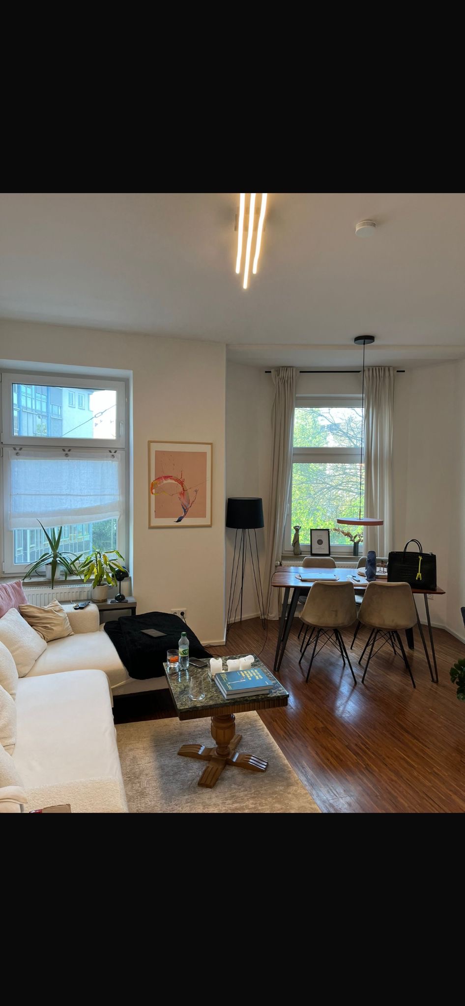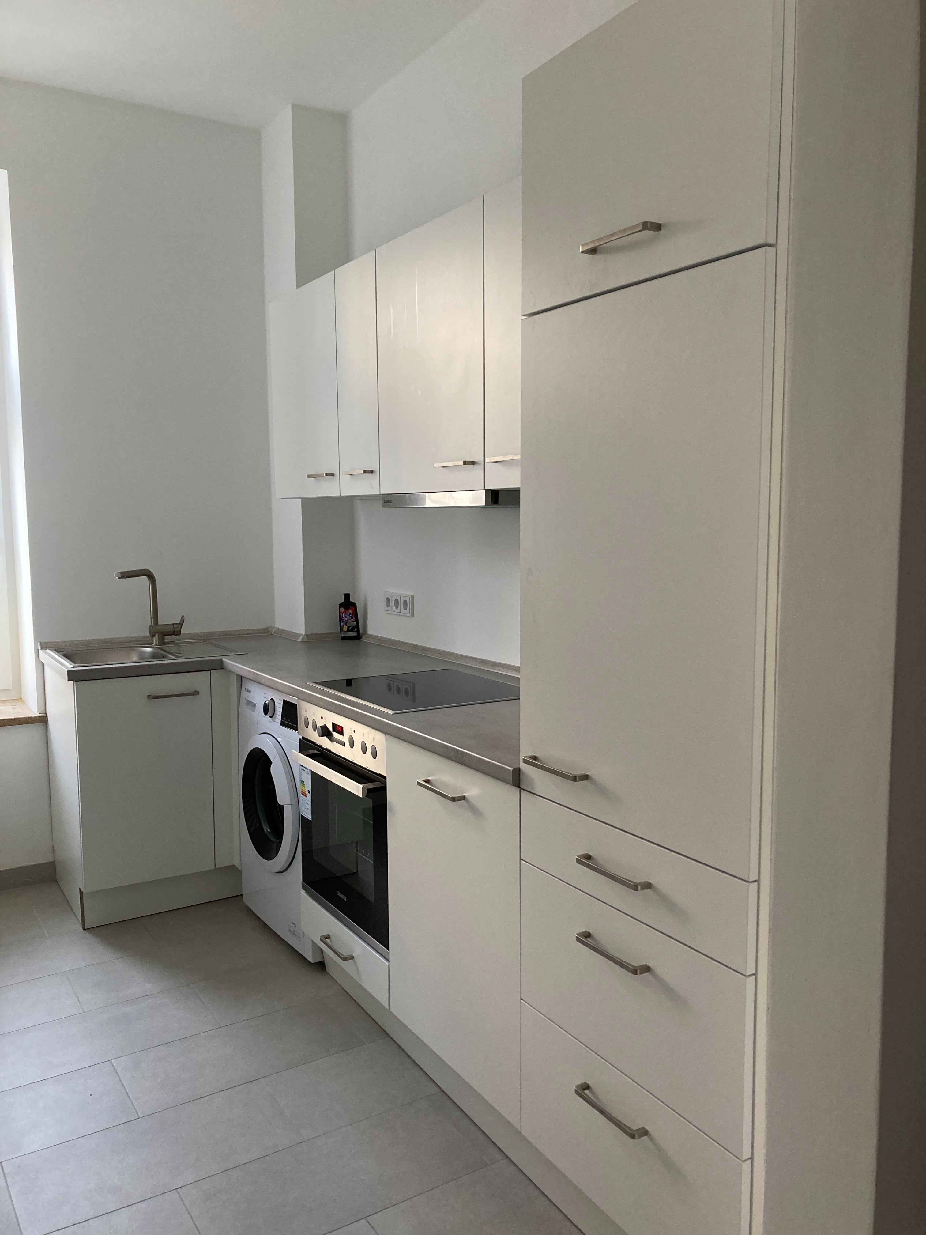Großzügige Raumaufteilung, Parkett bzw. Fliesenboden, hohe Räume, Einbauküche, Isolierglasfenster, Bad mit Fenster, teilmöbliert.