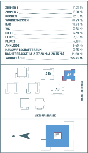 Die zum Verkauf stehende Wohnung befindet sich im Viktoria-Viertel, eingebettet in ein historisch gewachsenes Wohngebiet. Mit dem Abbruch des ehemaligen „American Arms Hotels“ wurde das städtebauliche Erscheinungsbild auf die neuen Entwicklungsflächen übertragen und harmonisch in die Umgebung integriert.
